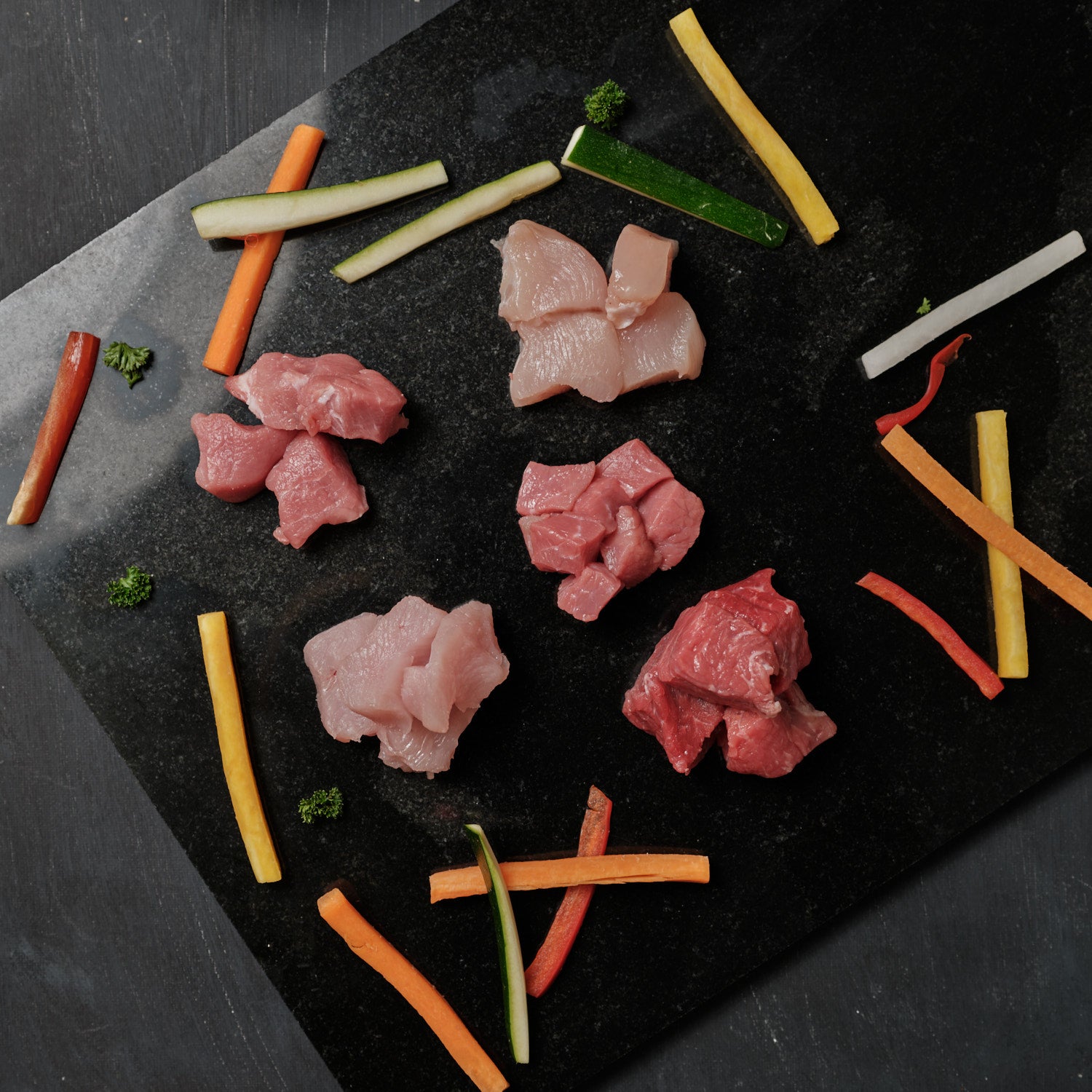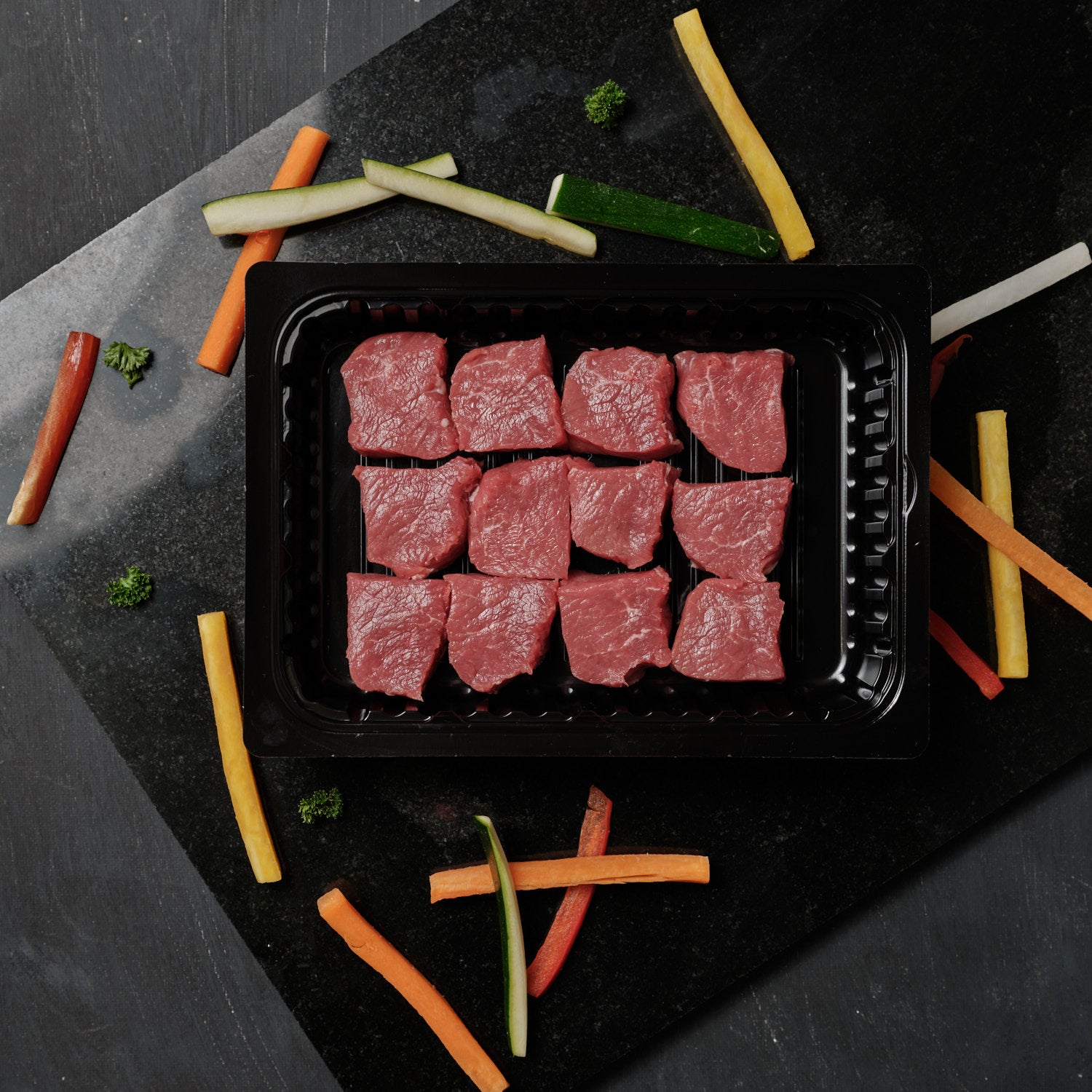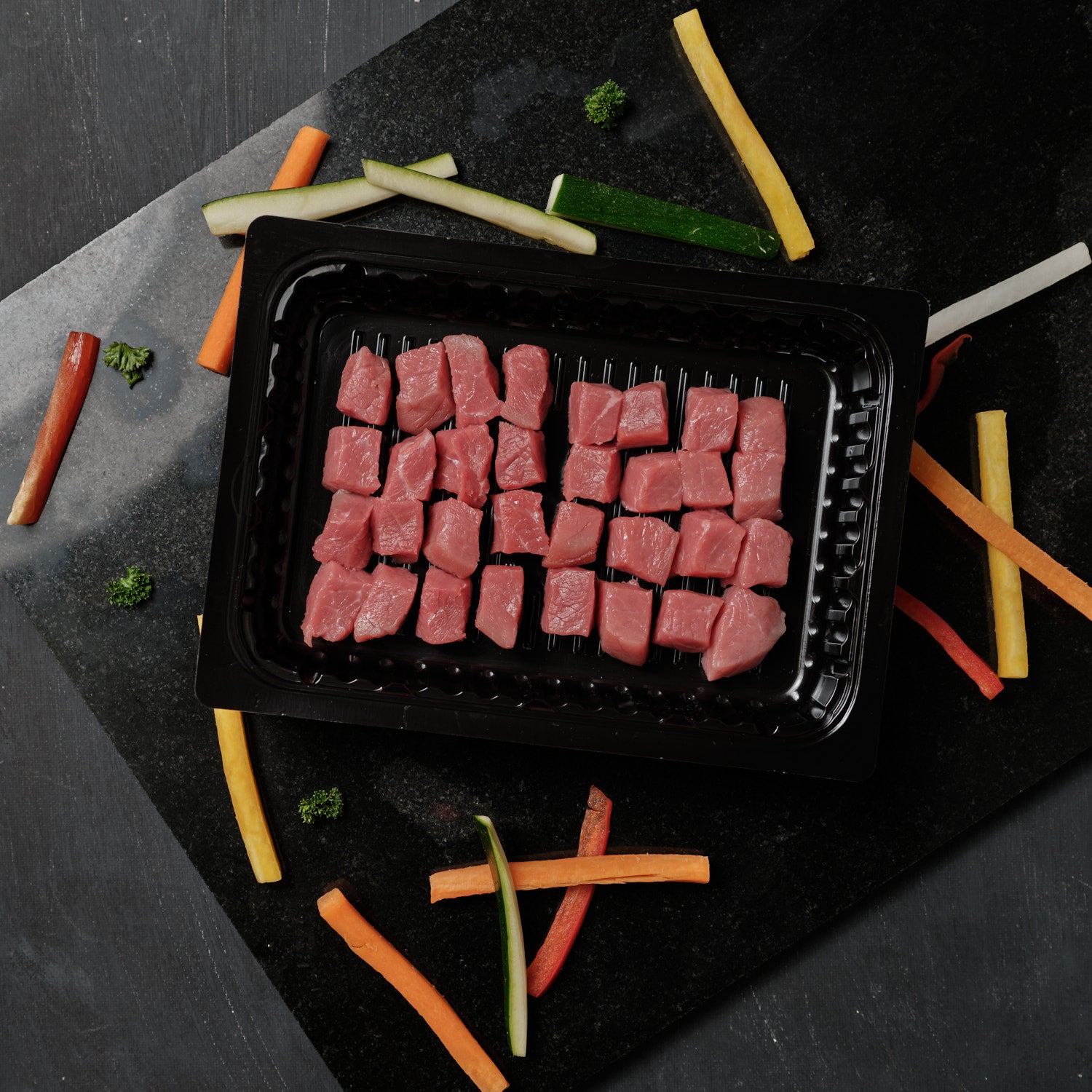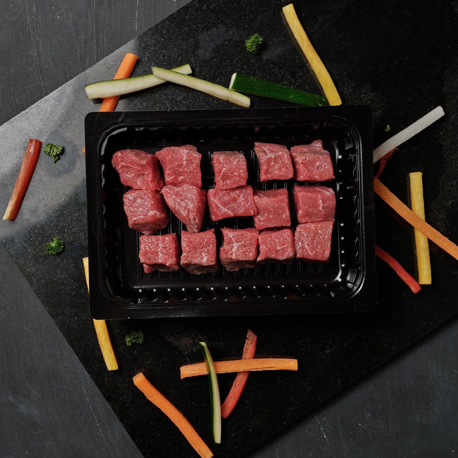 Fondue Bourguignonne zählt zu den Festtagsklassikern. Die Vorbereitung ist simpel, denn unsere Metzger schneiden Ihnen das Fleisch von Hand in Würfel.